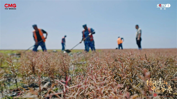 面對“生病”的堿蓬草,工程師帶領工人疏通潮溝,恢復水體循環(huán),為堿蓬草的健康生長提供科學保障。
